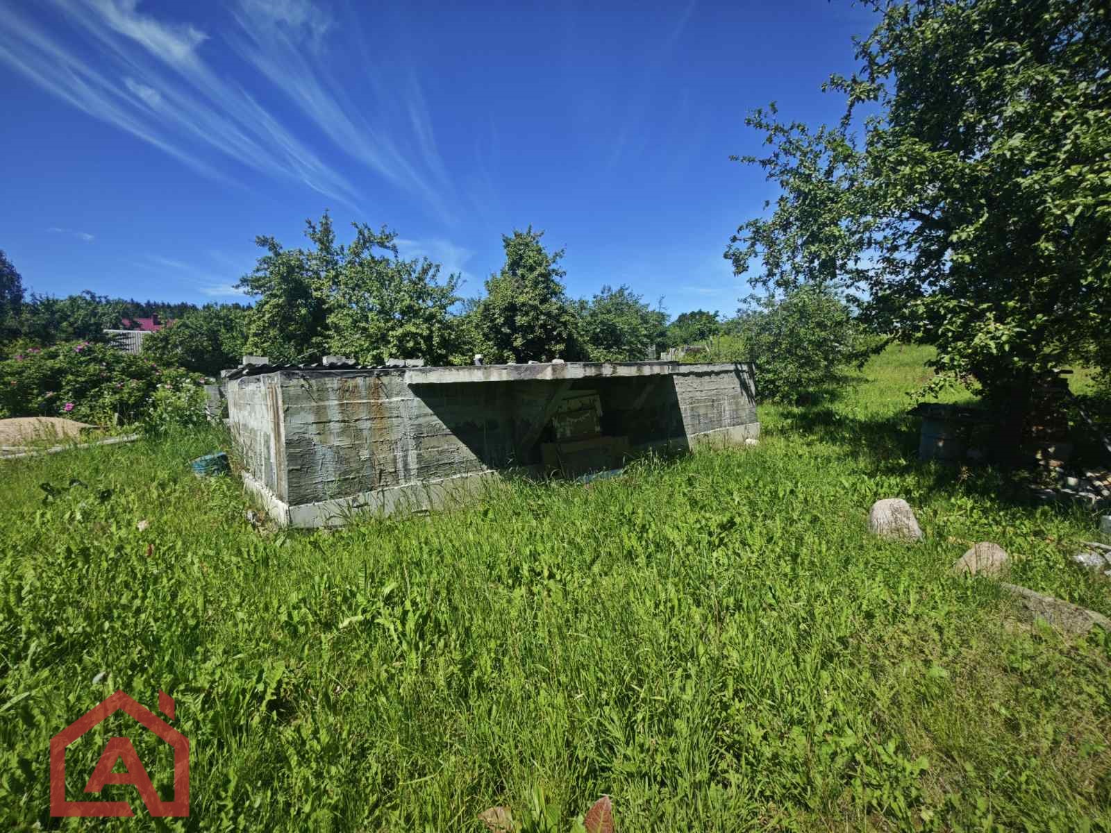 Земельный участок находится в частной собственности. Размеры участка ширина 20,60м, длина 35,7м. Участок огорожен с трех сторон забором (впереди - металлопрофиль высотой 2 м, имеются ворота и калитка, сзади и слева - сетка рабица высотой 1,5 м. На участке размещен бетонный фундамент размерами 8 м на 8 м для строительства загородного дома. Фундамент утеплен. Заглублен фундамент на 1 метр. Вокруг фундамента сделана дренажная система. На участке построен цокольный монолитный этаж. Половина предназначена под гараж с ямой, вторая половина - перегородки под баню (парилка) и подвал. На территории участка размещены строительные материалы - доски 25*400 мм 3 куба, песок - 2 куба, щебень - 4 куба. Светлый, сухой, ухоженный участок. Участок размещен на уровне дороги. Имеется заезд на участок для автомобиля. Центральная дорога в товариществе подсыпана асфальтированной крошкой. Возле участка песчаная дорога. На участке растут плодовые деревья, кустарники. Круглый год хорошие подъездные пути, зимой дороги системно чистятся. Многие соседи живут круглогодично. Благоустроенное товарищество, где системно поддерживается порядок. Идеальное место для жизни и отдыха. Свежий сосновый воздух. Приятные соседи. Тихое и спокойное место.