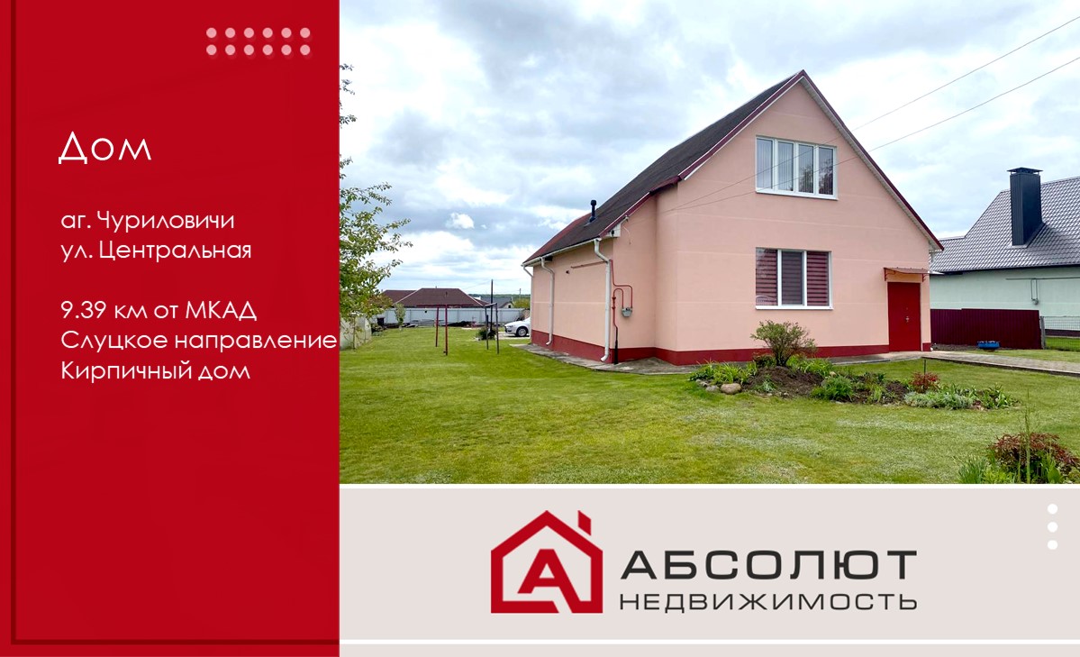 Кирпичный дом с ухоженным участком и садом в 15 минутах от Минска, аг. Чуриловичи, Слуцкое напр., расположен в тихом месте жилой коттеджной застройки для проживания круглый год. Есть магазин, школа, детский сад, Дом культуры, почта, амбулатория, все то, что нужно для комфортной жизни.