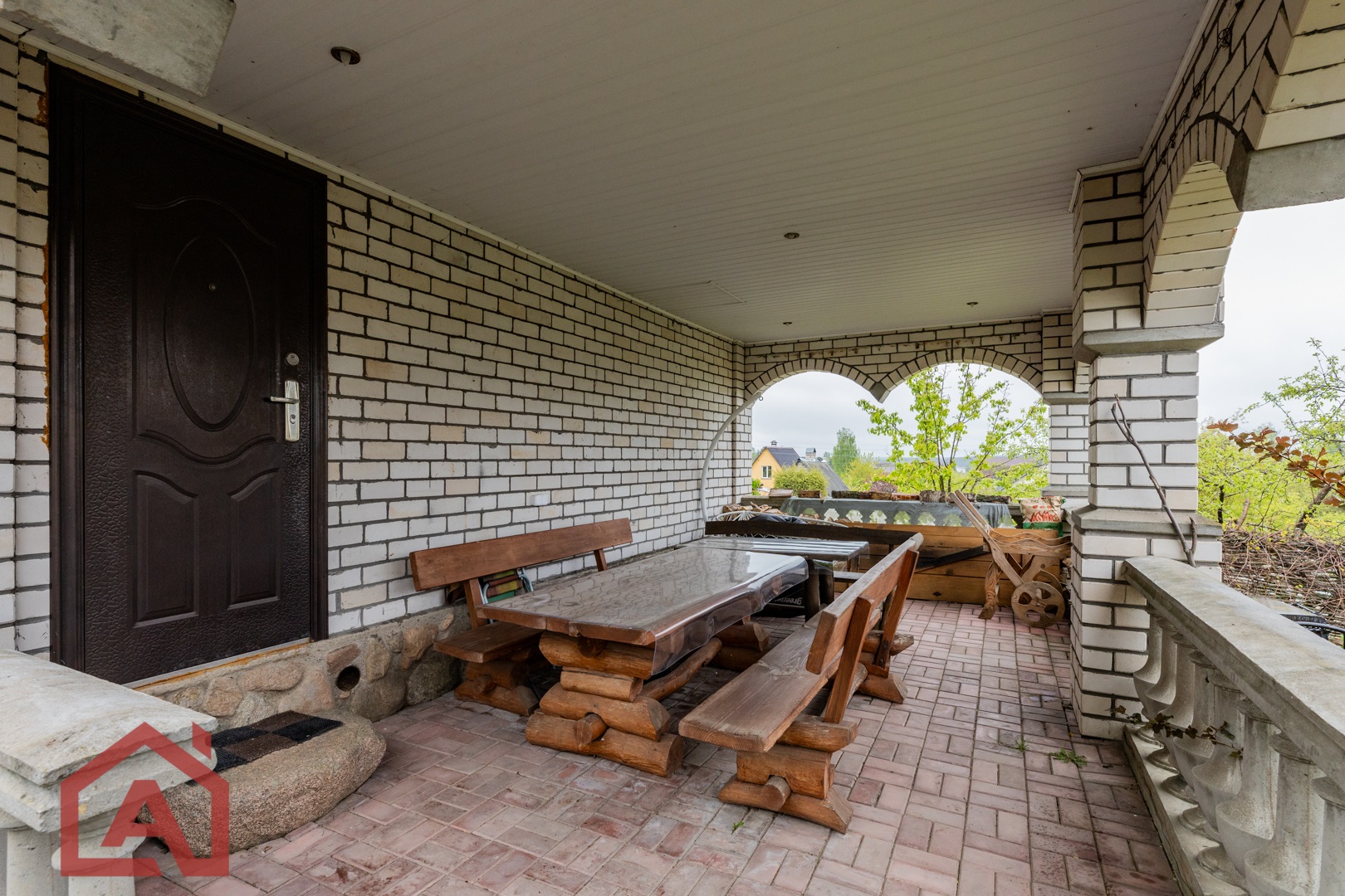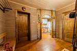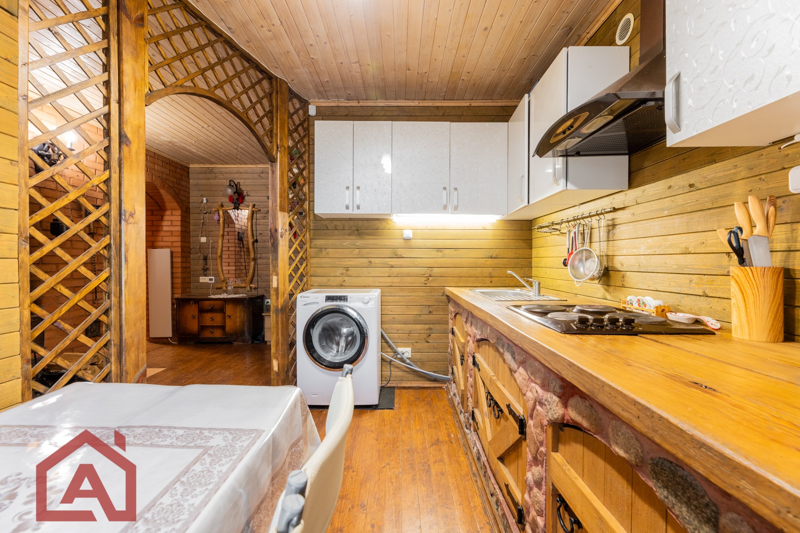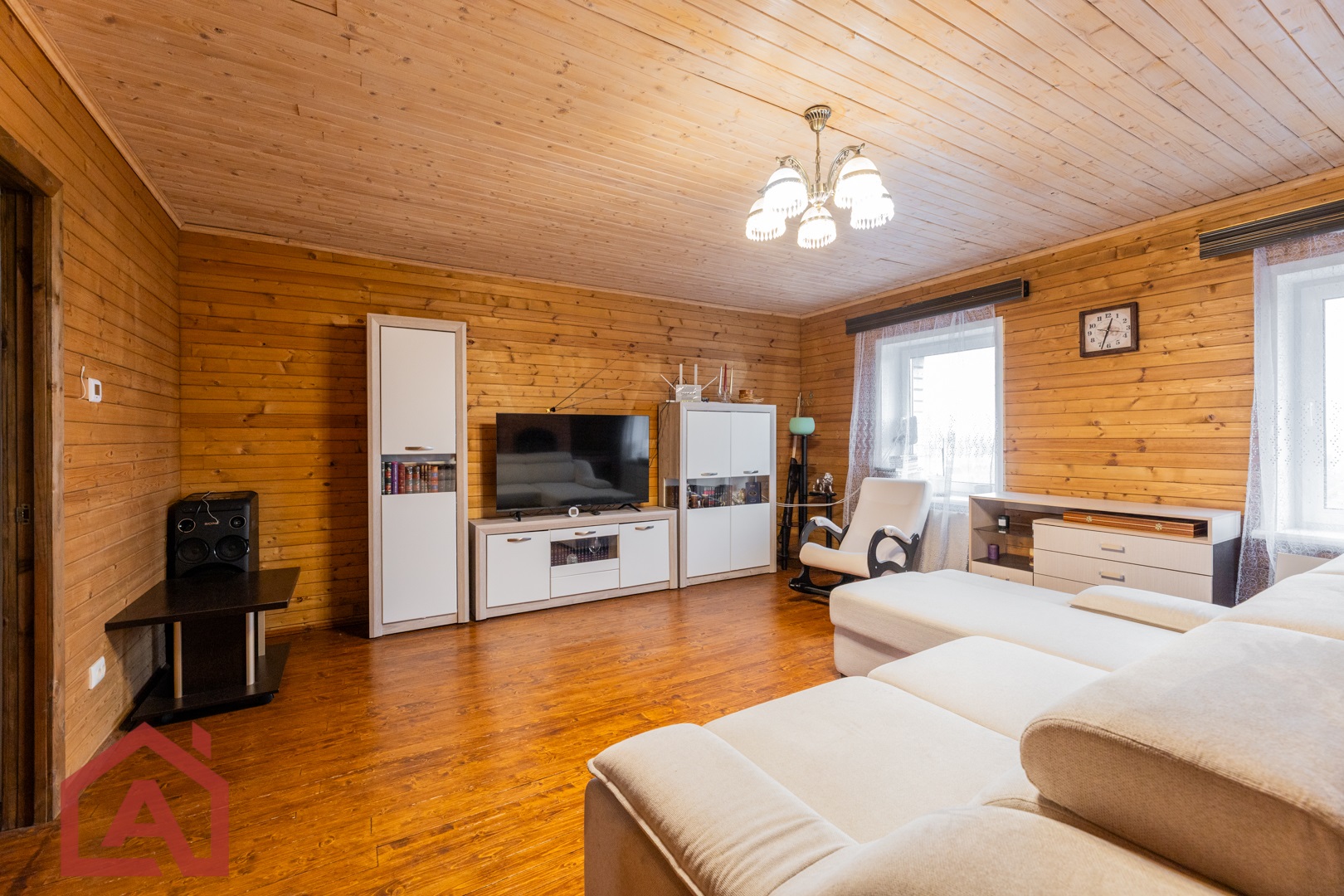 В доме установлена скважина для воды, отопление осуществляется печное и электрическое, имеется интернет, а также установлены датчики для обеспечения безопасности. Планировка дома включает две спальни, просторную гостиную с камином, кухню и санузел. Из застекленной веранды открывается восхитительный вид. На цокольном этаже находятся кладовка, погреб, техническое помещение для установки котла, а также комната для отдыха с бильярдом.