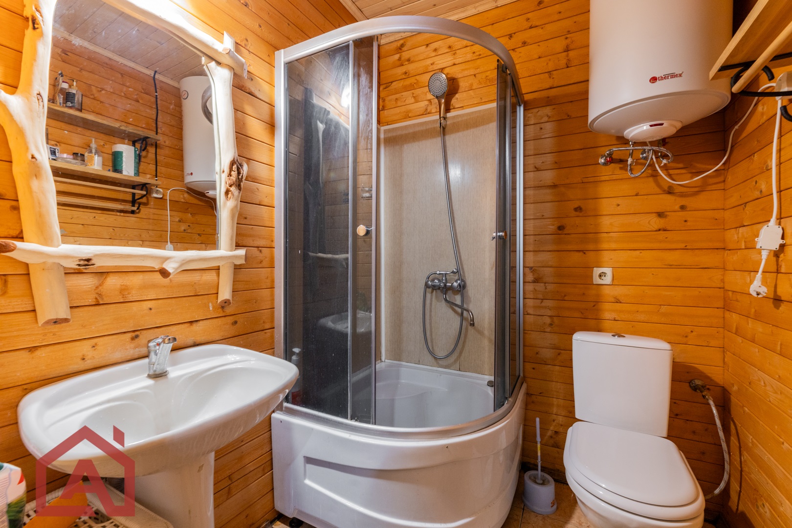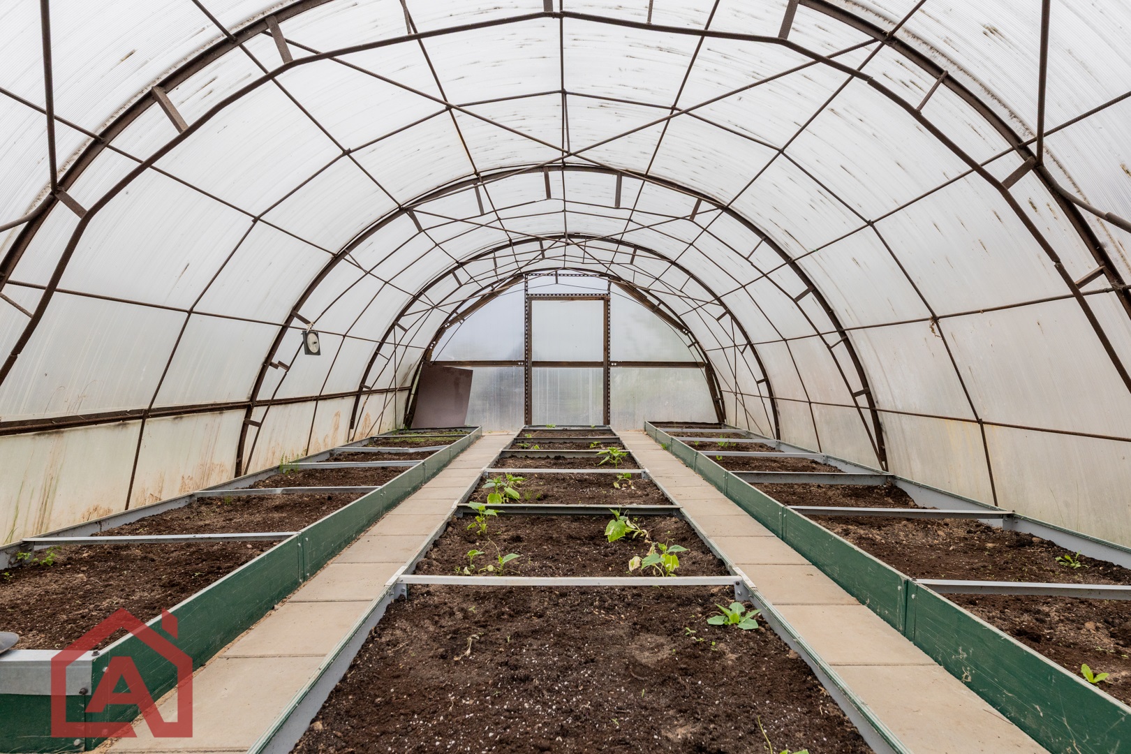 Участок имеет правильную форму и обширную территорию. На нем расположены дровяной сарай, теплица, просторная баня с отдельной террасой и комнатой для отдыха. Также на участке есть плодоносящий сад и виноградник. Вода распределена по всему участку.