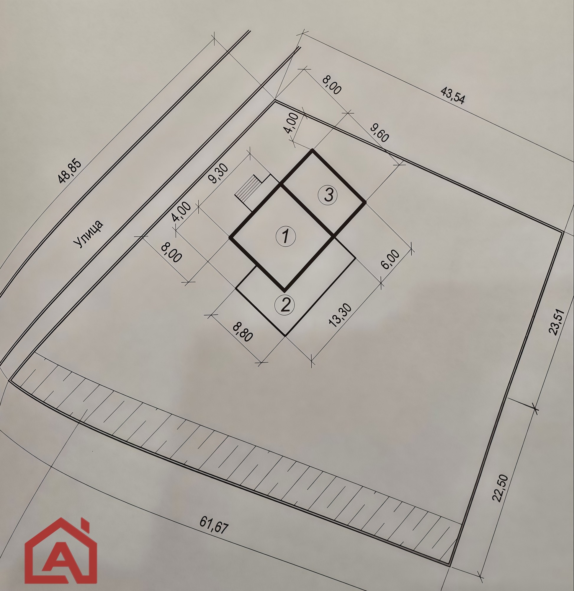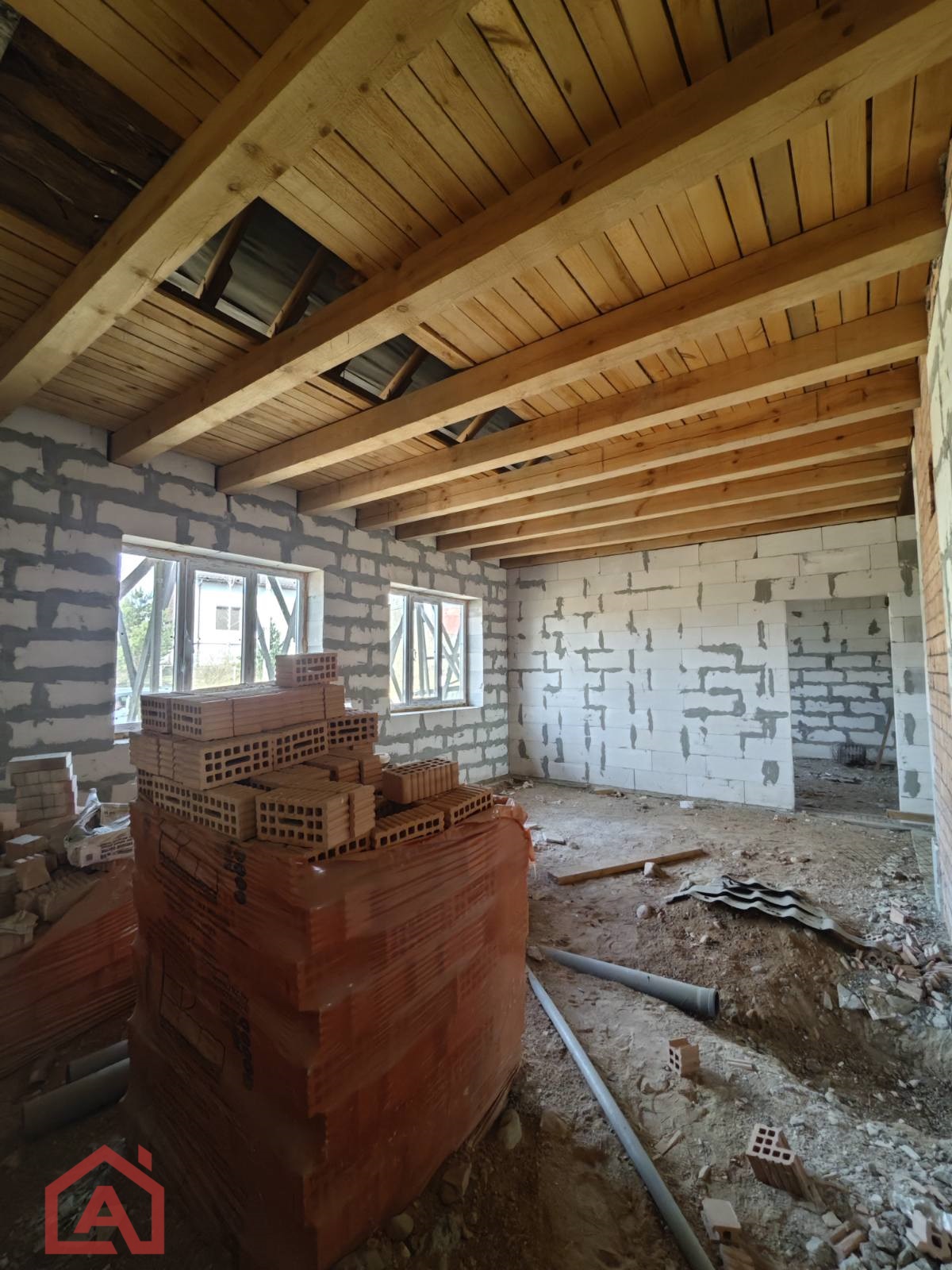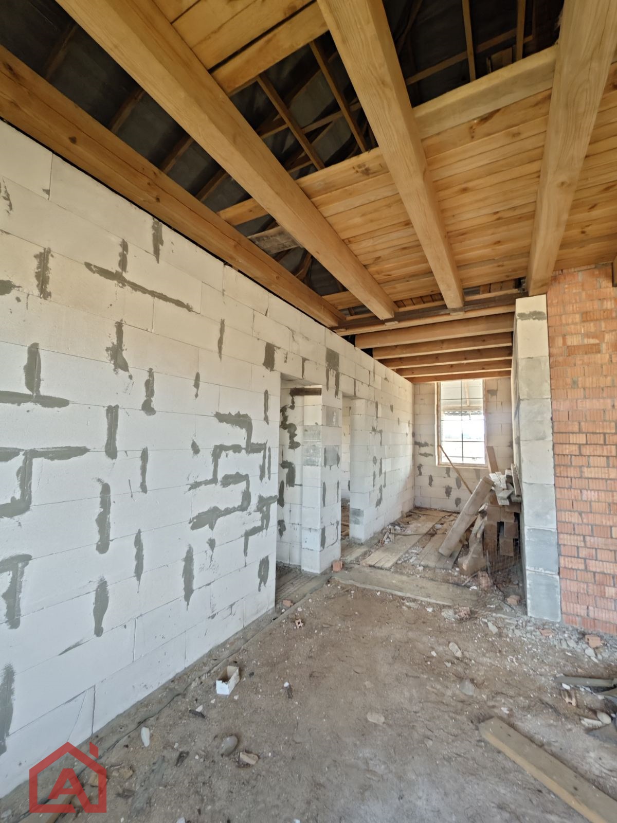 -на участке расположен новый просторный дом под отделку размером 13.44м х 14.9м, общей площадью 171м2;