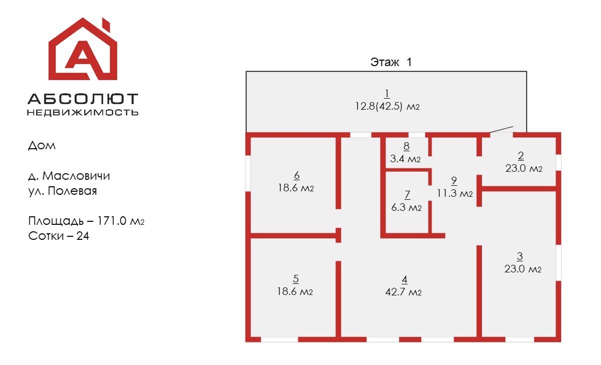 Продается недостроенный дом с земельным участком 24 сотки 14,3 км от МКАД в современной деревне Масловичи, ул.Полевая, 8 (Мядельское направление, Минский район, Юзуфовский с/с).