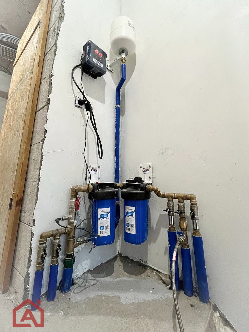• Песчаная скважина с погружным насос IBO (Польша) с повышенной устойчивостью к песку и станция биологической очистки KANN ULTRA 8 (Беларусь) на 5-8 человек