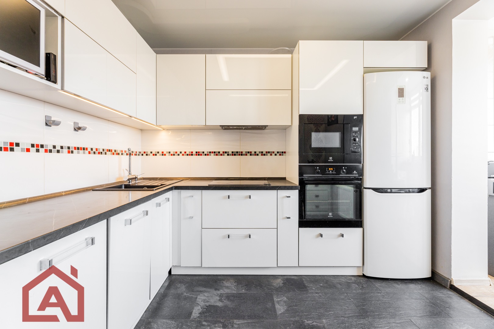 • Просторная кухня: 9,3 м² правильной квадратной формы со встроенной мебелью и надежной бытовой техникой— мечта хозяйки!