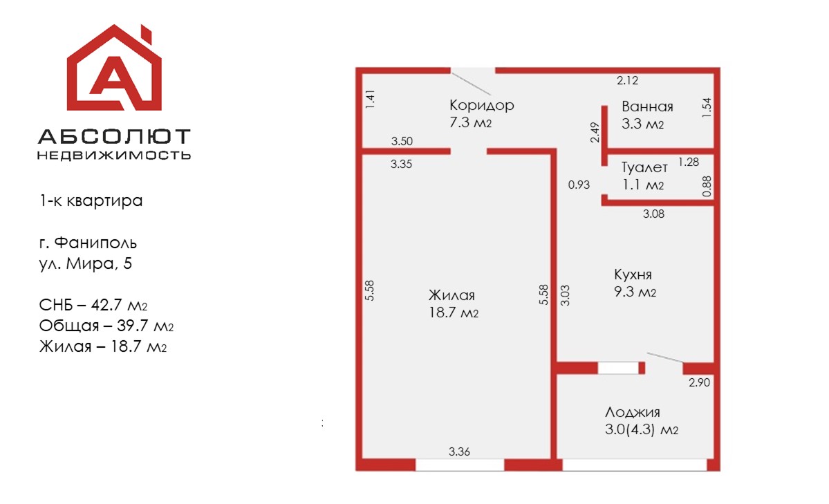 Продаётся просторная 1-комнатная квартира в Фаниполе!