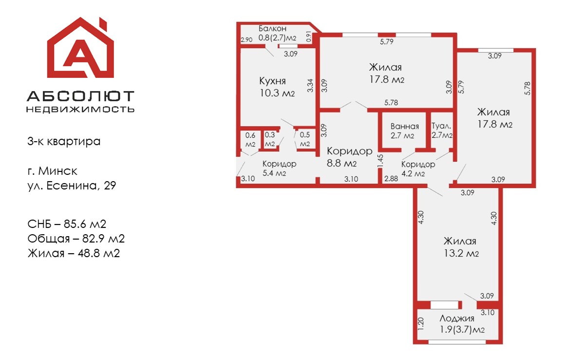3-комн.85.6м²