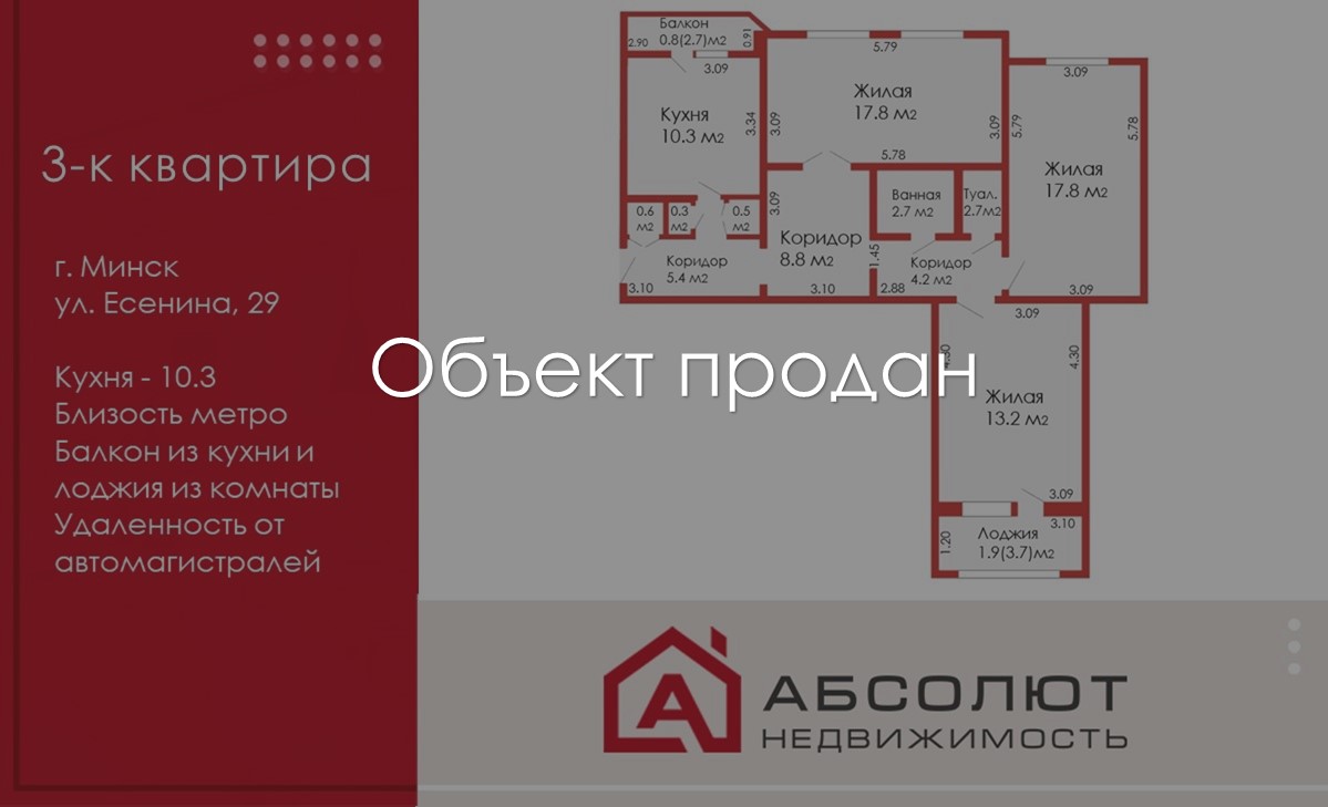Главная/Купить недвижимость/Квартирa/Продажа 3-к квартиры ул. Есенина, 29