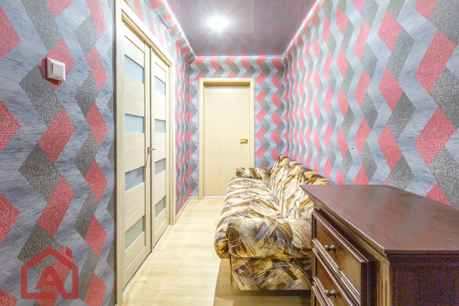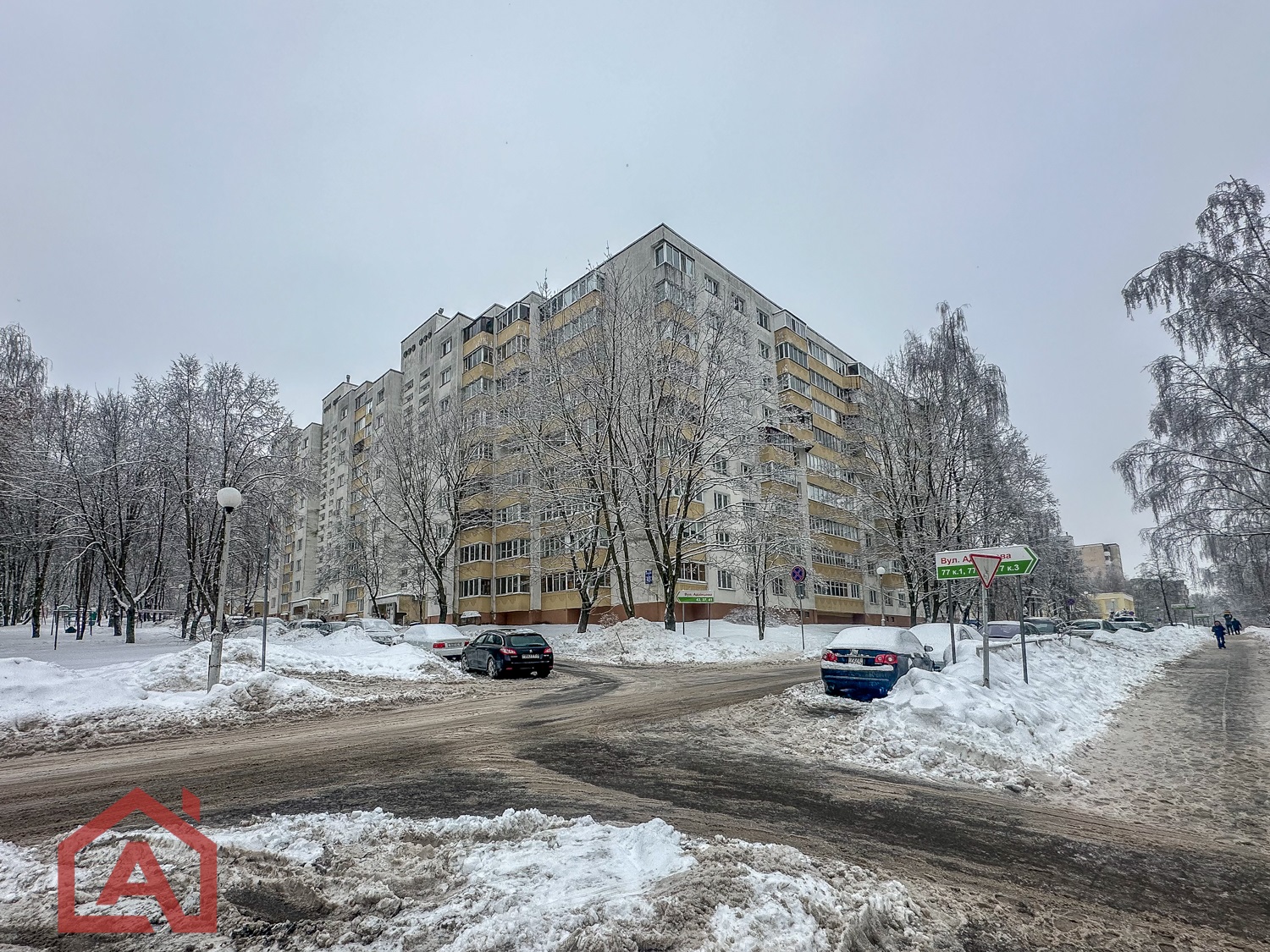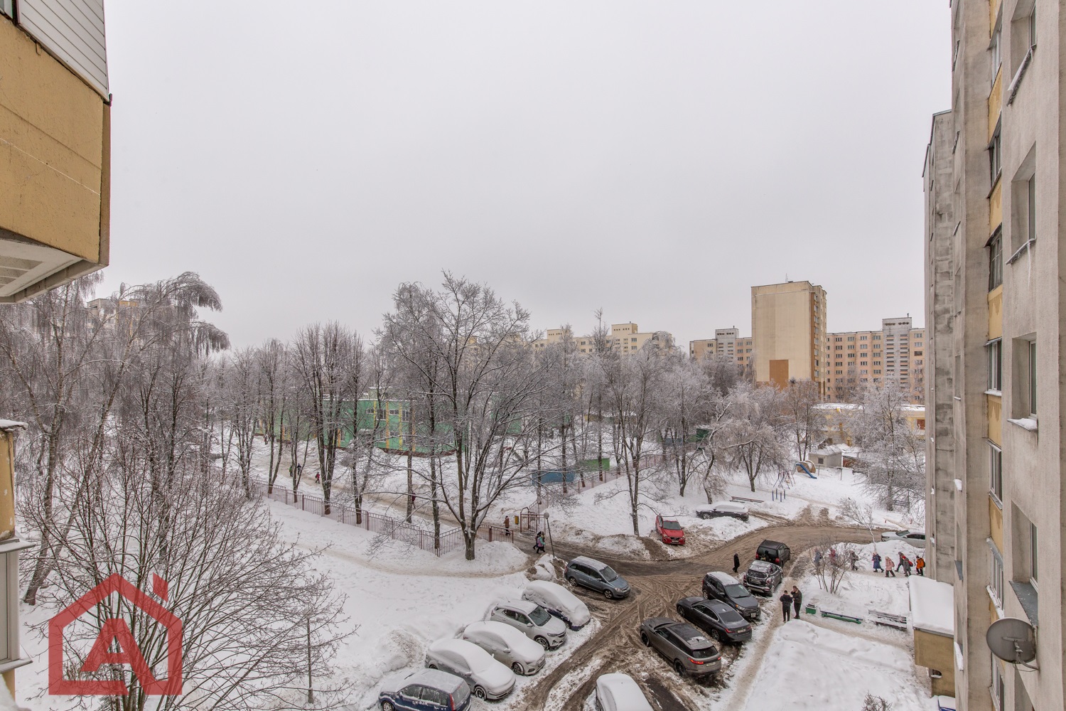 В тамбуре две квартиры. Двор тихий, просторный, много зелени. Есть парковка.