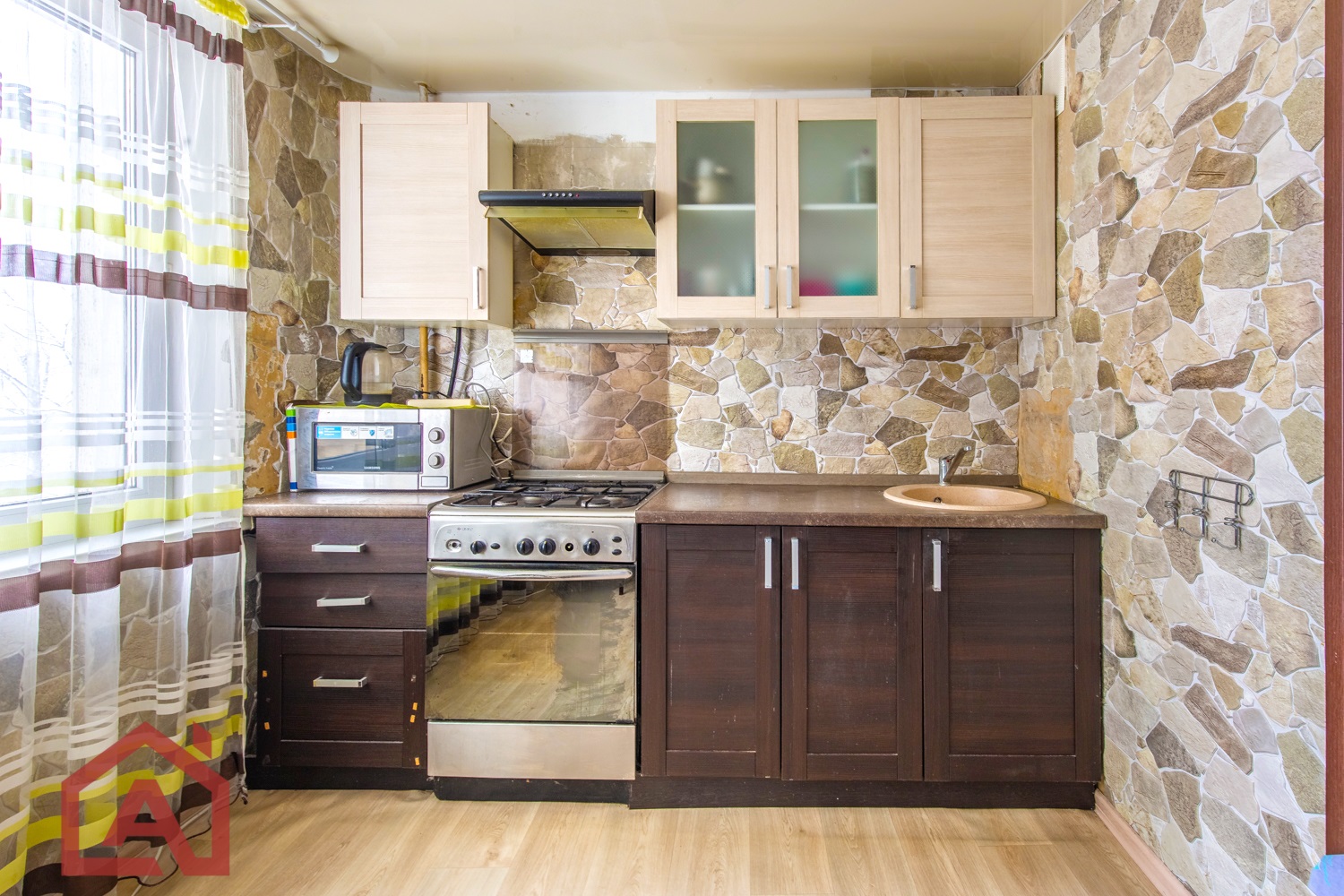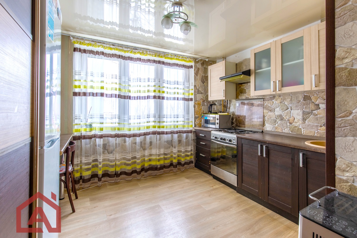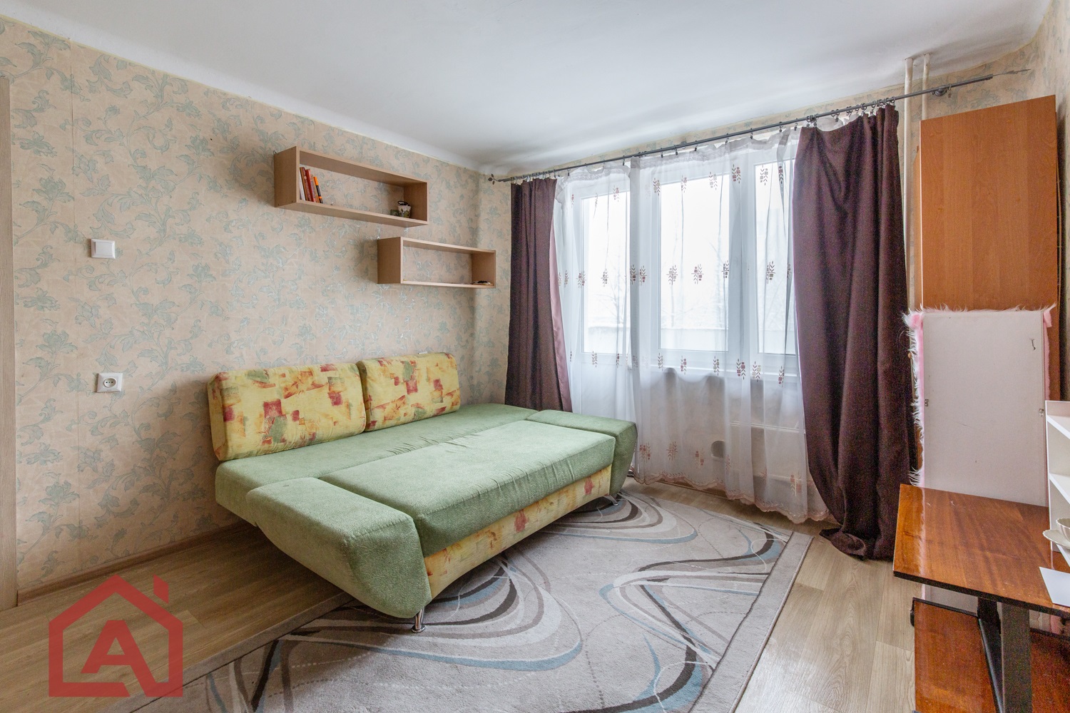 Кухонный гарнитур, окна ПВХ, напольное покрытие комбинированное – плитка, линолеум. С/у раздельный. Входная дверь металлическая. Счетчики воды, домофон.