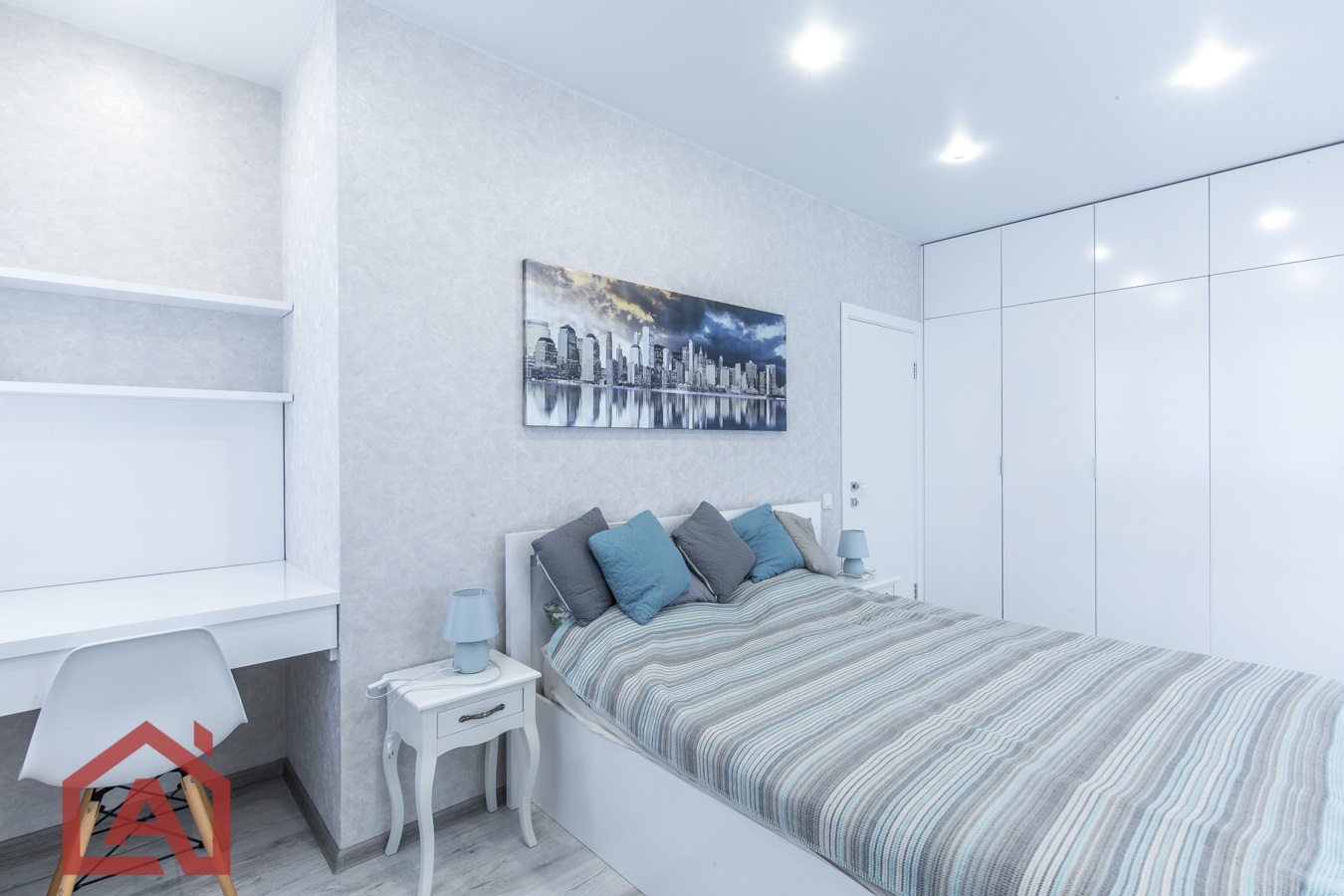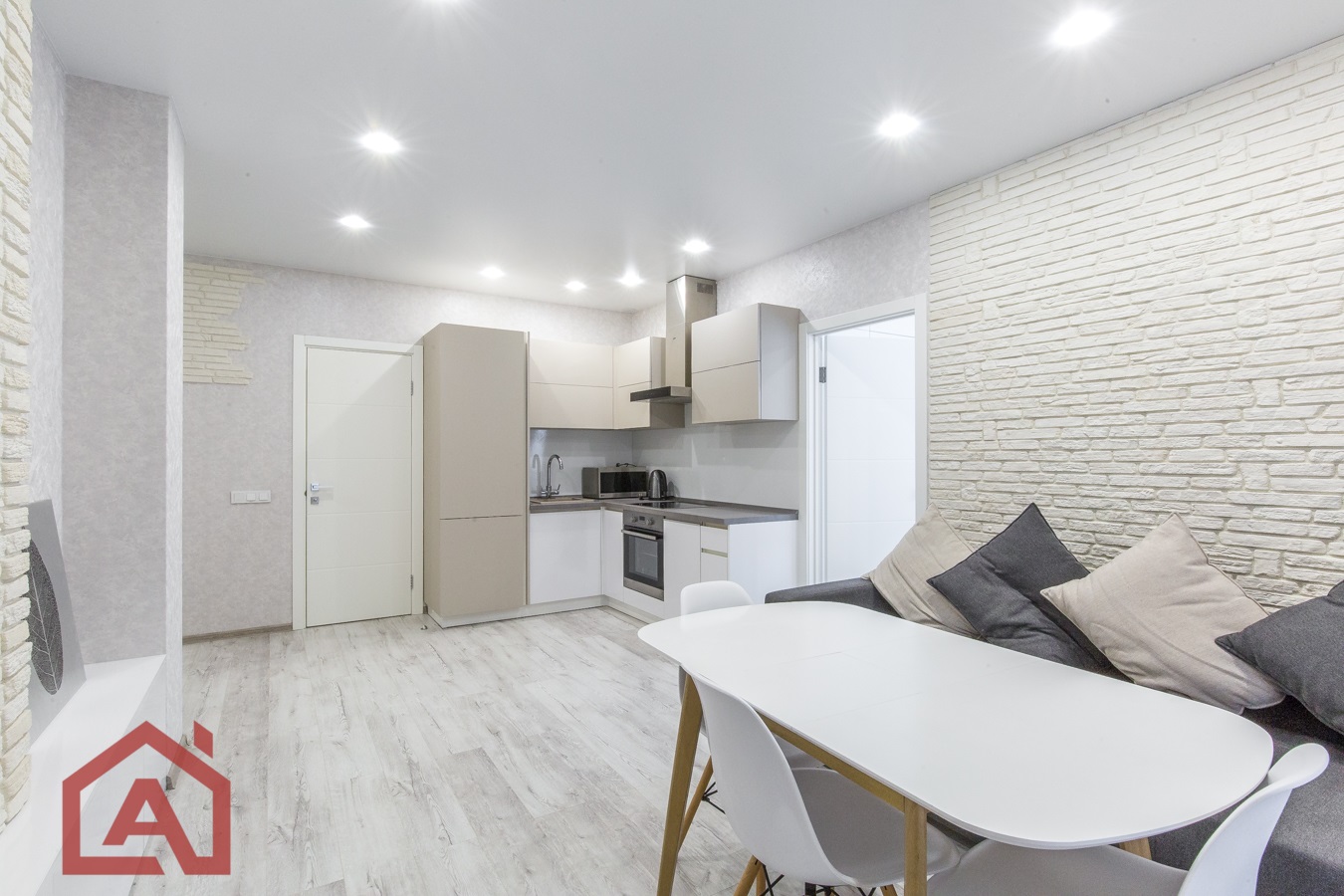 В квартире выполнен качественный ремонт, есть вся необходимая мебель и техника для комфортного проживания. Квартира светлая и просторная, окна выходят на бульвар.