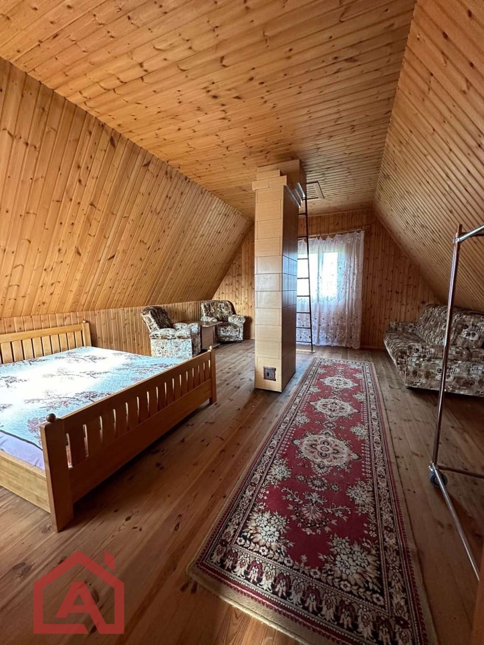 Дом полностью укомплектован . На первом этаже расположена кухня, гостиная с камином , жилая комната . На мансардном этаже расположена спальня .