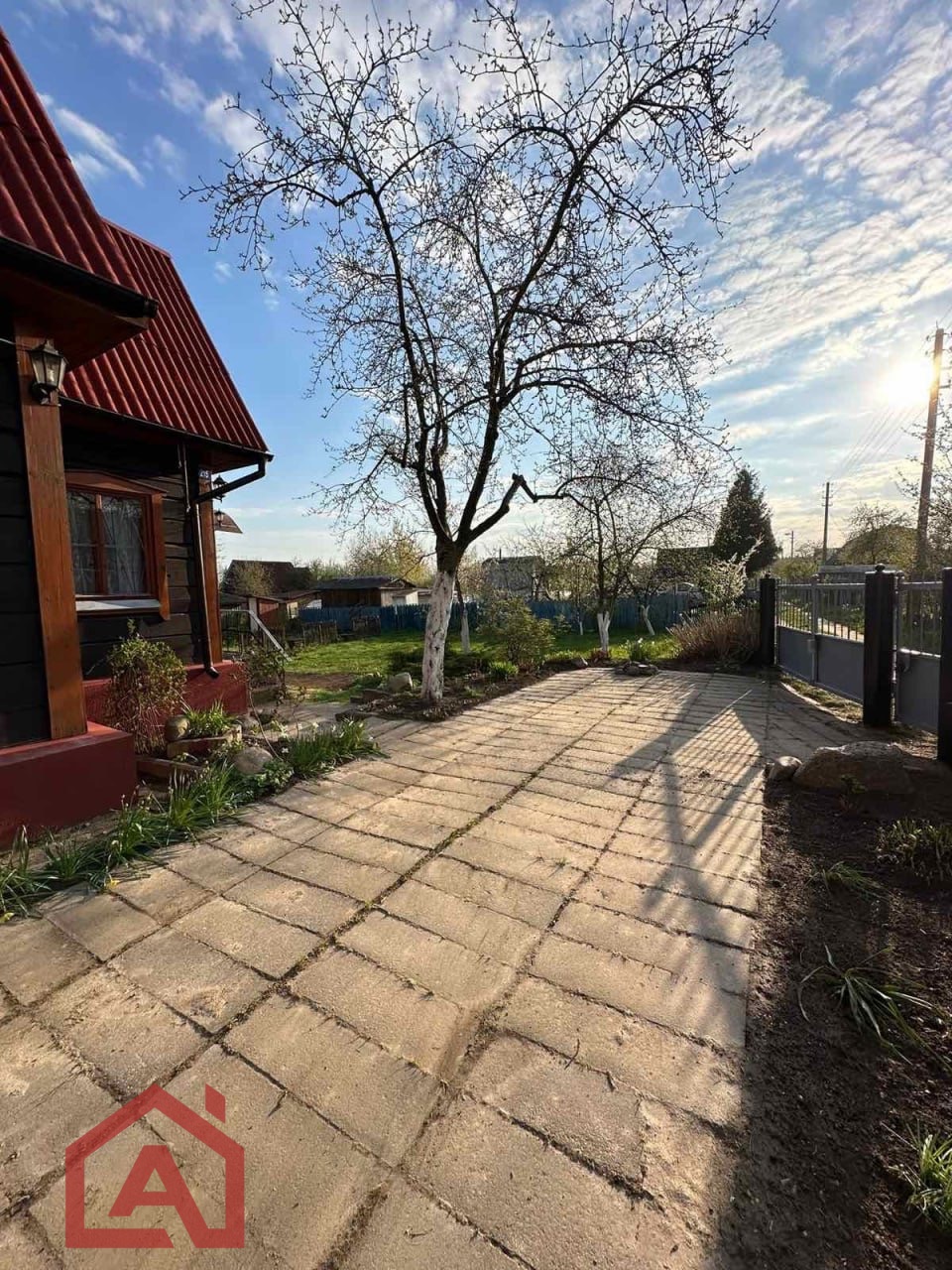 Дом огорожен забором.