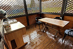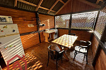 На участке баня , где расположена душевая с бойлером (горячая и холодная вода), обустроенный шатёр (веранда), уборная .